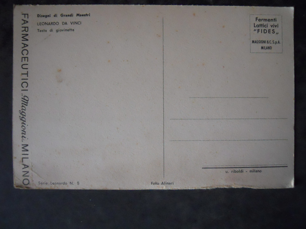 Cartolina LEONARDO DA VIUNCI TESTA DI GIOVINETTA FARMACEUTICI MAGGIONI [AFZ]€4,00 Condizioni come da foto 1 disponibili Cartolina LEONARDO DA VIUNCI TESTA DI GIOVINETTA FARMACEUTICI MAGGIONI [AFZ] quantità Aggiungi al carrello Categoria: Cartoline Tag: Cartolina LEONARDO DA VIUNCI TESTA DI GIOVINETTA FARMACEUTICI MAGGIONI [AFZ] Descrizione Descrizione Per ulteriori dettagli contattatemi Prodotti correlati CARTOLINA JUVENTUS CAMPIONE D’ITALIA 2012-13 ANNULLO TORINO 19-10-13 [AF6] €6,00 Aggiungi al carrello Cartolina Postale Postcard pubblicitaria Ferrania anni 60 [AF-F2] €2,00 Aggiungi al carrello Cartolina Postcard GIRO D’ITALIA 1955 CHLORODONT DUOMO MILANO [TR8-108 ] €9,50 Aggiungi al carrello CARTOLINA POSTCARD GIORGIO CHINAGLIA Nazionale Italia 1974 [GS42] €4,00 Aggiungi al carrello