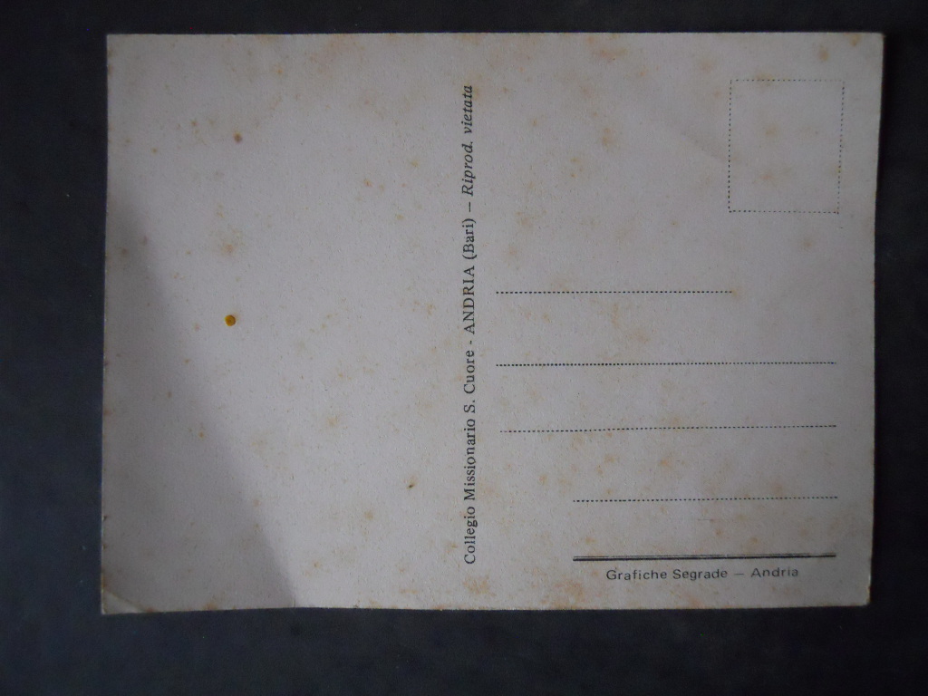 Cartolina ORFANOTROFIO COLLEGIO MISSIONARIO S. CUORE ANDRIA ANNI 50 [AFZ]€4,00 Condizioni come da foto 1 disponibili Cartolina ORFANOTROFIO COLLEGIO MISSIONARIO S. CUORE ANDRIA ANNI 50 [AFZ] quantità Aggiungi al carrello Categoria: Cartoline Tag: Cartolina ORFANOTROFIO COLLEGIO MISSIONARIO S. CUORE ANDRIA ANNI 50 [AFZ] Descrizione Descrizione Per ulteriori dettagli contattatemi Prodotti correlati Cartolina Natalizie anno 2001 Roma Calcio – DELVECCHIO 1 [GS4] €5,00 Aggiungi al carrello CARTOLINA POSTCARD FABIO CAPELLO Nazionale Italia 1974 [GS42] €3,00 Aggiungi al carrello Cartolina Postcard SBB Locomotiva Elettrica Re 4/4 I 10013 – anno 1980 [TR8-77 ] €5,50 Aggiungi al carrello Cartolina Postale Anni 60 Istituto Magistrale Taranto Carmella Borelli [AF.F2] €5,00 Aggiungi al carrello