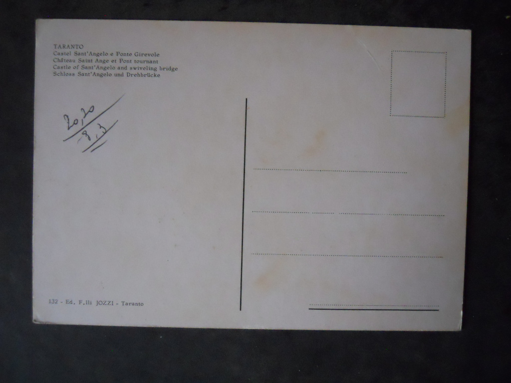 Cartolina TARANTO CASTELLO ARAGONESE 1970 [AFZ]€4,00 Condizioni come da foto 1 disponibili Cartolina TARANTO CASTELLO ARAGONESE 1970 [AFZ] quantità Aggiungi al carrello Categoria: Cartoline Tag: Cartolina TARANTO CASTELLO ARAGONESE 1970 [AFZ] Descrizione Descrizione Per ulteriori dettagli contattatemi Prodotti correlati Cartolina INTER FC Anno 1988 BEPPE BERGOMI autografo stampato 16,5×23,5 cm [M13] €4,00 Aggiungi al carrello Cartolina Natalizie anno 2001 Roma Calcio – DELVECCHIO 2 [GS4] €5,00 Aggiungi al carrello CARTOLINA JUVENTUS CAMPIONE D’ITALIA 2012-13 ANNULLO TORINO 19-10-13 [AF6] €6,00 Aggiungi al carrello Invito Quaresima Cartolina Riti Settimana Santa Taranto 2016 [C75] €3,00 Aggiungi al carrello