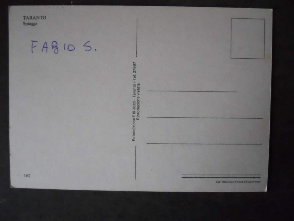 Cartolina TARANTO MARE LIDO GANDOLI ANNI 70 [AFZ]€4,00 Condizioni come da foto 1 disponibili Cartolina TARANTO MARE LIDO GANDOLI ANNI 70 [AFZ] quantità Aggiungi al carrello Categoria: Cartoline Tag: Cartolina TARANTO MARE LIDO GANDOLI ANNI 70 [AFZ] Descrizione Descrizione Per ulteriori dettagli contattatemi Prodotti correlati Cartolina Natalizie anno 2001 Roma Calcio – DELVECCHIO 2 [GS4] €5,00 Aggiungi al carrello Cartolina INTER FC Anno 1988 MATTEOLI autografo stampato 16,5×23,5 cm [M13] €4,00 Aggiungi al carrello Cartolina Dylan Dog Copertina DIABOLO IL GRANDE stampato ed. Lo Vecchio [AF-26] €1,50 Aggiungi al carrello Rarissima Cartolina Lenticolare di Magnus Le Femmine Incantate [C91] €50,00 Aggiungi al carrello