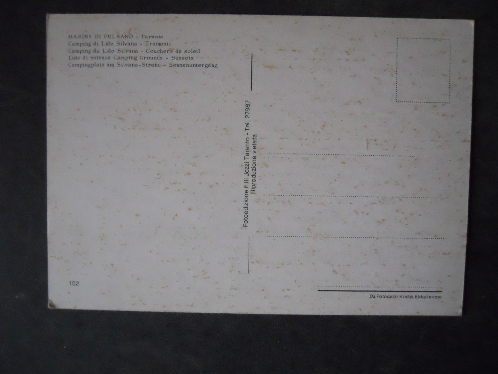 Cartolina TARANTO PULSANO CAMPING LIDO SILVANA ANNI 70 [AFZ]€4,00 Condizioni come da foto 1 disponibili Cartolina TARANTO PULSANO CAMPING LIDO SILVANA ANNI 70 [AFZ] quantità Aggiungi al carrello Categoria: Cartoline Tag: Cartolina TARANTO PULSANO CAMPING LIDO SILVANA ANNI 70 [AFZ] Descrizione Descrizione Per ulteriori dettagli contattatemi Prodotti correlati Cartolina anni 60 originale John Lennon Ricordi 12×17 €2,50 Aggiungi al carrello Cartolina INTER FC Anno 1988 ALEX BIANCHI autografo stampato 16,5×23,5 cm [M13] €4,00 Aggiungi al carrello Cartolina Natalizie anno 2001 Roma Calcio – DELVECCHIO 1 [GS4] €5,00 Aggiungi al carrello Cartolina pubblicitaria 1992 Giocomagia CAPRICORNO [AF26] €4,00 Aggiungi al carrello