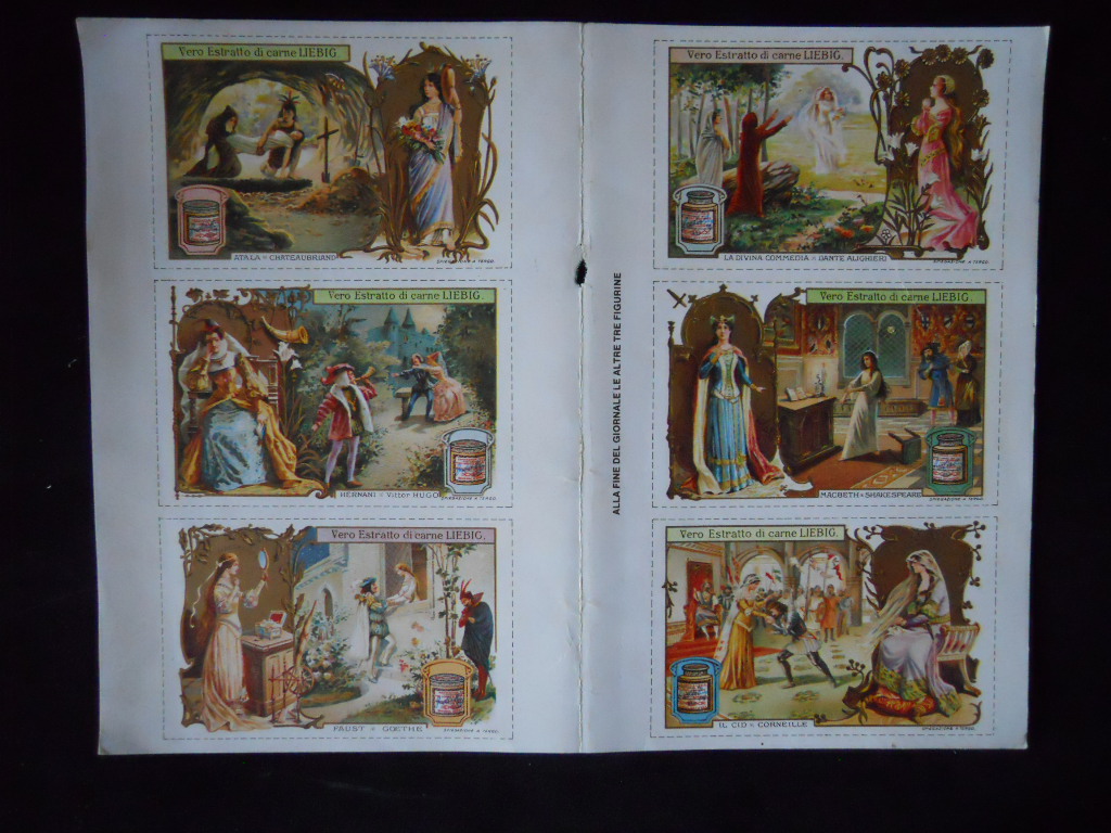 Figurine LIEBIG Foglio 6 fig. DANTE HUGO MACBETH CID Ristampa Italia 1978 [C81]