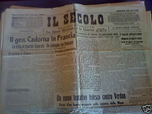 Il Secolo 22/3/1916 Gen Cadorna a Parigi con Poincarè