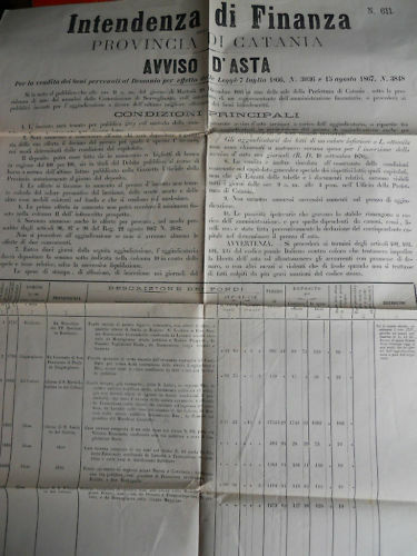 Manifesto vendita beni demaniali Catania 1881