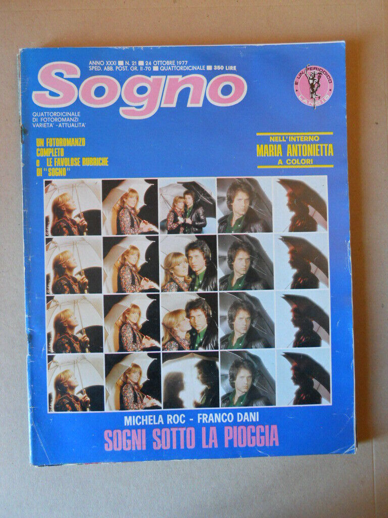 SOGNO n°21 1977 con FOTO MARIA ANTONIETTA Fotoromanzo edizioni Lancio [VL30]€4,90 Buone condizioni 1 disponibili SOGNO n°21 1977 con FOTO MARIA ANTONIETTA Fotoromanzo edizioni Lancio [VL30] quantità Aggiungi al carrello Categoria: Fotoromanzi Tag: SOGNO n°21 1977 con FOTO MARIA ANTONIETTA Fotoromanzo edizioni Lancio [VL30] Descrizione Descrizione vedi legenda di valutazione cliccando il link nella prima pagina del negozio Prodotti correlati LETIZIA n°629 rivista fotoromanzi edizioni Lancio [JS17] €2,70 Aggiungi al carrello DARLING n°390 rivista fotoromanzi edizioni Lancio [JS17] €2,70 Aggiungi al carrello CHARME n°661 rivista fotoromanzi edizioni Lancio [JS17] €2,70 Aggiungi al carrello CHARME n°660 rivista fotoromanzi edizioni Lancio [JS17] €2,70 Aggiungi al carrello
